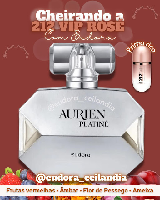 O Aurien Platiné é perfeito para quem ama o 212 VIP Rosé, mas deseja uma alternativa mais acessível sem comprometer a qualidade e o impacto olfativo. Ele é ideal para ocasiões especiais, festas ou para o dia a dia, quando você quer se sentir elegante e confiante. Além disso, a Eudora é reconhecida por criar fragrâncias com excelente fixação, garantindo que você permaneça perfumada por horas.